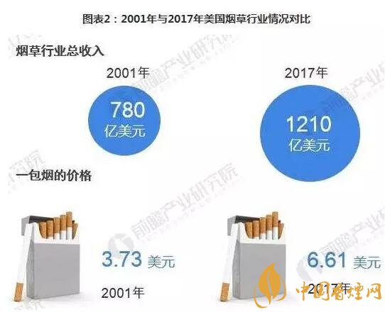 實(shí)際上,美國(guó)的卷煙銷量下滑了,煙民變少了,但行業(yè)收入?yún)s不斷上升的原因主要是由于美國(guó)香煙公司在不斷提升價(jià)格。2001年美國(guó)香煙平均1包只賣3.73美元,到2016年價(jià)格上漲了72.12%,一包香煙要賣6.42美元。但卷煙加價(jià)腳步從未停止,2017年9月,美國(guó)3家大的卷煙制造商菲莫國(guó)際、雷諾茲煙草公司以及帝國(guó)品牌公司將每包普通卷煙的價(jià)格提升了約0.1美元。今年3月,今年3月,每包普通卷煙的價(jià)格再次上漲0.09美元,一包煙的平均價(jià)格約為6.61美元。