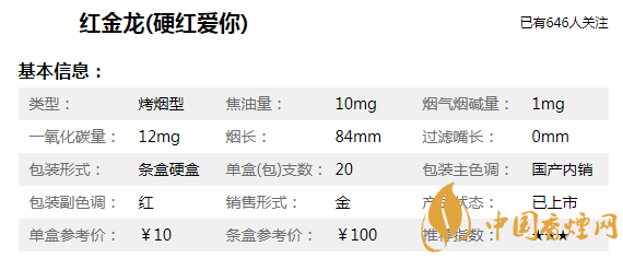 紅金龍(愛(ài)你)硬藍(lán)煙身長(zhǎng)90mm,焦油含量?jī)H為8mg/支,煙支修長(zhǎng)雅致、煙氣淡雅醇厚、口感醇和細(xì)膩。帶給品吸者新鮮有趣的吸食體驗(yàn)和適中的滿足感。吸食口感上,和南京炫赫門比較相似,低焦、低危害對(duì)身體危害也要低一些。只不過(guò)目前部分地區(qū)已經(jīng)買不到該款煙了,消費(fèi)者要注意甄別真假,以免上當(dāng)受騙。