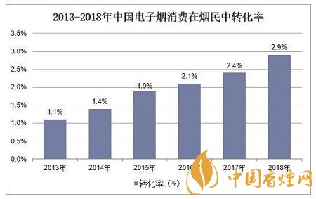 據(jù)統(tǒng)計(jì),2018年中國電子煙消費(fèi)在煙民中轉(zhuǎn)化率(新型煙草消費(fèi)者占煙民比例)約為2.9%。