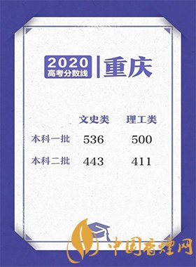 本科一批:理工類為452分,文史類為520分;本科二批:理工類為333分,文史類為437分。