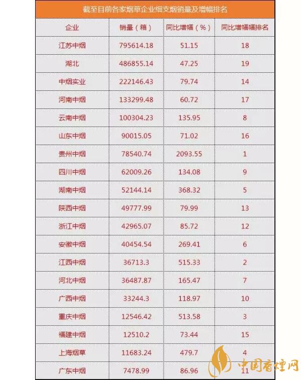 表格中,細(xì)支煙銷售量排名銷量總量位居首位的依然是江蘇中煙。雖然,今年各地反映炫赫門限量供應(yīng),但依然沒有撼動蘇產(chǎn)細(xì)支第一的地位。最新統(tǒng)計消息稱,南京(炫赫門)截至11月底的銷量早已突破了55萬箱,這樣的炫赫門真的很贊!增幅最為明顯是貴州中煙,78540.74箱銷量。其中功不可沒的當(dāng)初貴煙(跨越)。這款去年上市的新品,今年1—11月份的銷量統(tǒng)計,已經(jīng)超過了5.8萬箱,成為了國內(nèi)細(xì)支爆珠的第一大規(guī)格。#p#副標(biāo)題#e#