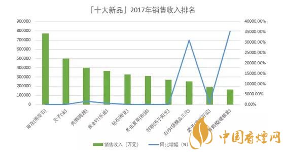 以銷售收入評(píng)價(jià),「十大新品」2017年合計(jì)銷售收入達(dá)到354.3億元,同比增加139.3億元,增長64.7%,平均單箱批發(fā)均價(jià)達(dá)到6.2萬元;銷售收入最高的「南京(雨花石)」達(dá)到77.4億元,最少的「黃鶴樓(硬銀紫)」只有16.3億元;單箱批發(fā)均價(jià)最高的「南京(雨花石)」達(dá)到13.25萬元,最低的「黃鶴樓(硬銀紫)」只有3.25萬元。