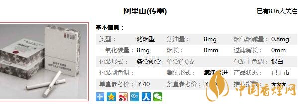 阿里山傳墨香煙參數(shù)信息