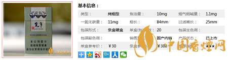 | 類型 :烤煙型 | 焦油量 :10mg | 煙氣煙堿量 :1.1mg | 一氧化碳量 :11mg |