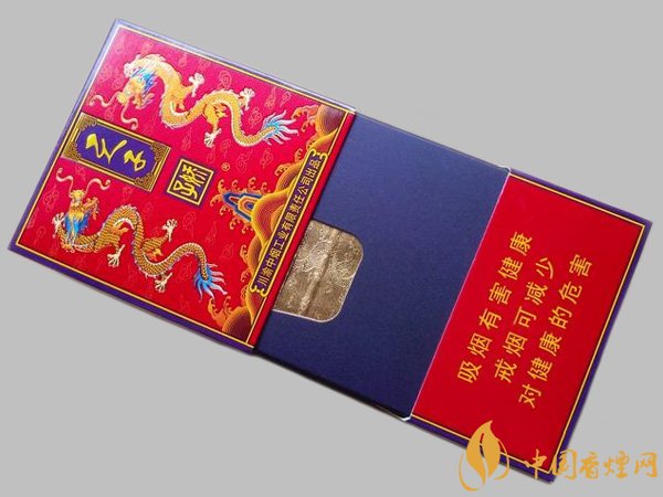 煙盒開啟方式是拉提式的,給人一種高級感,金色內(nèi)襯紙上也是印著雙龍圖案,內(nèi)襯板為紫色,這款產(chǎn)品的包裝在配色上是會給人高貴大氣的感覺。