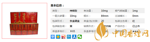 | 類型 :烤煙型 | 焦油量 :10mg | 煙氣煙堿量 :1mg | 一氧化碳量 :10mg |
