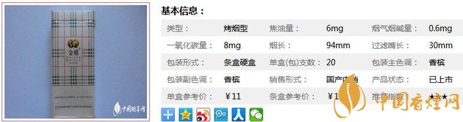 一、金橋英倫奶香 香煙價(jià)格