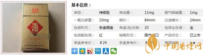 | 類(lèi)型 :烤煙型 | 焦油量 :11mg | 煙氣煙堿量 :1mg | 一氧化碳量 :10mg |