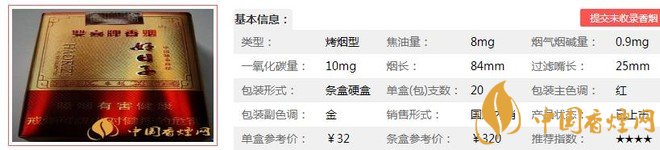 | 類型 :烤煙型 | 焦油量 :8mg | 煙氣煙堿量 :0.9mg | 一氧化碳量 :10mg |