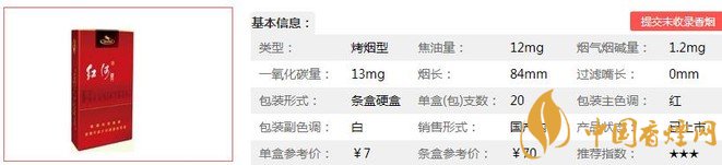 類型 :烤煙型 焦油量 :12mg 煙氣煙堿量 :1.2mg 一氧化碳量 :13mg