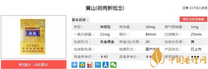以上便是由香煙網(wǎng)小編為大家介紹的關(guān)于黃山徽商新概念口感及參數(shù) 黃山徽商新概念價(jià)格40元一包的相關(guān)信息,想要了解更多有關(guān)內(nèi)容請(qǐng)點(diǎn)擊:芙蓉王塑藍(lán)口感及參數(shù)介紹 芙蓉王塑藍(lán)多少錢一包
