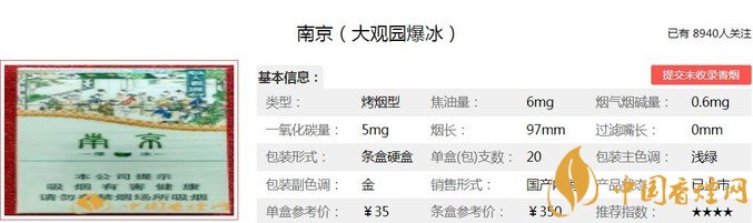 江蘇中煙的細(xì)支產(chǎn)品在國(guó)內(nèi)煙草市場(chǎng)上是首屈一指的,可以說是引領(lǐng)了行業(yè)的發(fā)展。從中低端的炫赫門、十二釵系列,中端的雨花石,到高端的沉香、細(xì)支九五和紅樓卷等,價(jià)格區(qū)間跨度較大,適合不同的消費(fèi)群體,而且各種產(chǎn)品不但包裝各有特色,其口感也是各有所長(zhǎng),很受煙民的喜愛。下面就由香煙網(wǎng)小編帶大家一起來了解南京大觀園爆冰的相關(guān)信息。