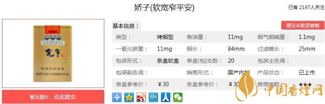 綜合來說嬌子(寬窄平安)的質(zhì)量還是可以保證的。它有著寬窄系列香煙傳統(tǒng)的口感和味道,細(xì)膩而香醇。只是相比其它款式的寬窄,在某一品評(píng)指標(biāo)上,稍有些差距。但是橫向比對(duì)相同價(jià)位其它品牌的香煙,平安的優(yōu)勢,還是存在的,售價(jià)在30元一包。