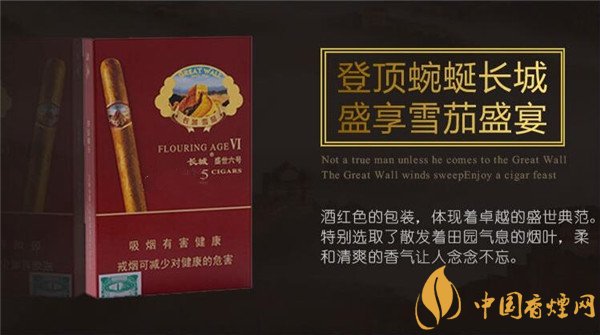 長城雪茄煙盛世6號秉承了長城當盛世5號的包裝色系,主色系采用艷麗的酒紅,輔助副色系為金色,看上去一樣的喜慶的貴氣。長城雪茄煙多少錢一包,接下來香煙網(wǎng)小編將為大家介紹長城雪茄煙價格表和圖片。