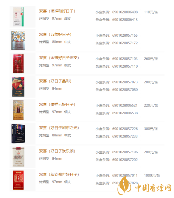 2020年雙喜好日子香煙價(jià)格表