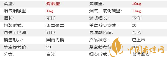 | 類型 :烤煙型 | 焦油量 :10mg | 煙氣煙堿量 :0.9mg | 一氧化碳量 :9mg |
