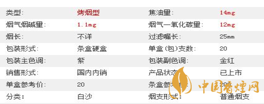白沙紫和采用白色豎紋卷煙紙,煙絲端切口較平整,煙絲油潤金黃,水松紙采用的是鐳射光柱紙,香味醇正濃厚,渾圓一團,煙氣飽滿,入喉順暢,“醇和”之謂所言不虛。經(jīng)調(diào)查白沙紫和售價為20元/包。