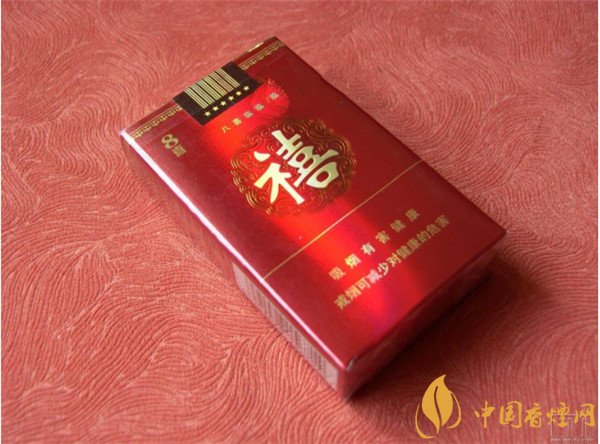 這款八喜香煙的煙盒是大紅色軟包,煙盒正中是一個喜慶的團花,里面是一個淡金色的大“禧”字。左上角是豎寫的“8喜”,中間是“八喜臨門”小字。背面寫了這八句詩,錫箔紙上也有“禧”字水印,封簽上也有“禧”,處處透著喜慶。了解它的外觀我們來看看這款泰山八喜香煙多少錢?據(jù)小編調(diào)查得知在八喜香煙價格表圖中銷售參考價為18元/盒。