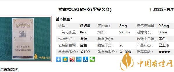 黃鶴樓1916久久平安多少錢一包 細(xì)支1916平安久久價(jià)格100元/包