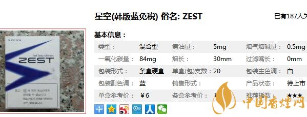 星空香煙多少錢一包 韓國(guó)ZEST(星空)香煙價(jià)格(10-15元)