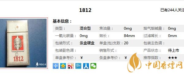 以上內容是由香煙網小編為大家收集以及整理的關于,1812煙多少錢一包相關信息,想要了解更多信息詳情請點擊:銷量最好外煙品牌。