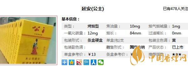 延安公主香煙參數(shù)信息