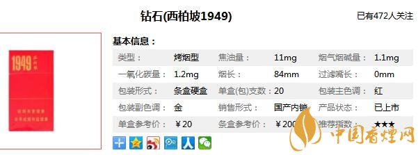 西柏坡香煙參數(shù)信息