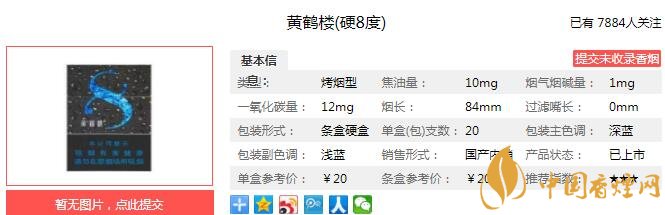 黃鶴樓硬8度煙支長84mm,白色煙嘴,綠色藍色點綴,過濾嘴為亮滑材質(zhì),質(zhì)感一流。下面我們一起來看黃鶴樓硬8度的參數(shù)信息:焦油量:10mg 煙堿量:1.0mg 一氧化碳量:12mg