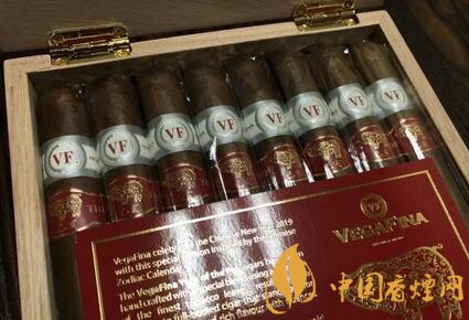 和很多中國新年設(shè)計一樣,這款雪茄采用紅色的盒子,帶有金色的裝飾,盒子采用翻蓋漆盒。每個盒子里面有16支雪茄。雪茄上帶有兩個標(biāo)簽,一個是唯佳的標(biāo)準標(biāo)簽,一個是紅色印有一頭金色豬和中文乙亥的標(biāo)簽。