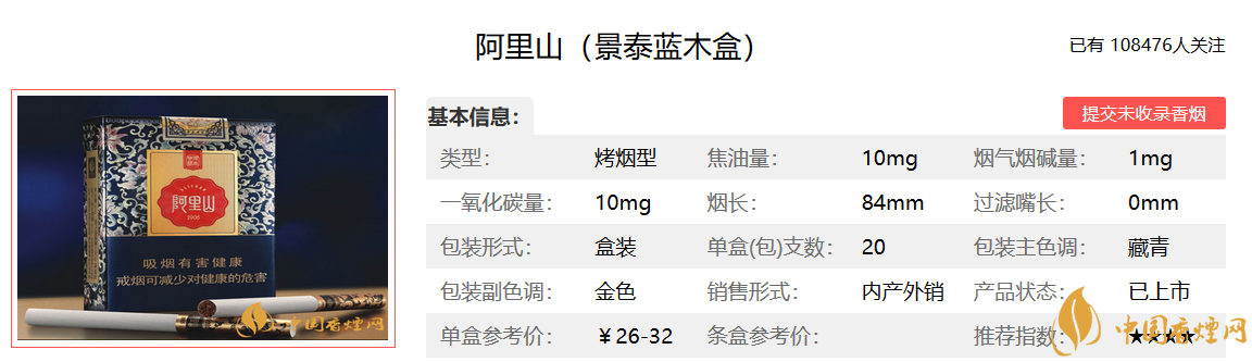 阿里山景泰藍(lán)香煙還行,雖有10毫克的焦油含量,但不嗆喉,有一絲的清香,煙草味很好。