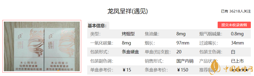以上就是香煙網(wǎng)小編為大家整理介紹的龍鳳呈祥遇見香煙的價格參數(shù)以及煙民點(diǎn)評,希望為大家提供幫助。想了解更多香煙信息,請關(guān)注香煙網(wǎng)!
