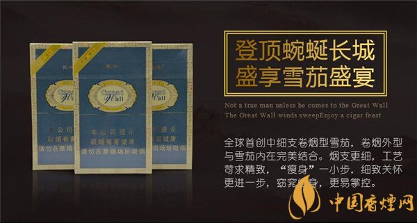 這款長城雪茄煙茄體長度94mm ,直徑7.88mm,環(huán)徑19.5mm,每個黃色的煙蒂上都印有藍色印花,其中兩條藍白色相間的環(huán)抱紋設(shè)計顯得長城醇雅薄荷煙很有層次感,綜黃色的茄身小巧精致卻又顯得纖細而挺拔。#p#副標題#e#