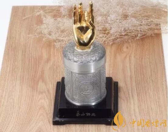 山東中煙出品,不是我們說的一般的泰山佛光。這款香煙造型主題是錫罐包裝,錫罐蓋子是蓮花座上一只金燦燦的佛手。這款煙用來送禮,再是體面不過。市場價格在15320-12000之間。為什么這款在和天下(尊尚)之后呢,因為這款煙是可以在青島卷煙廠專賣店里買到的。