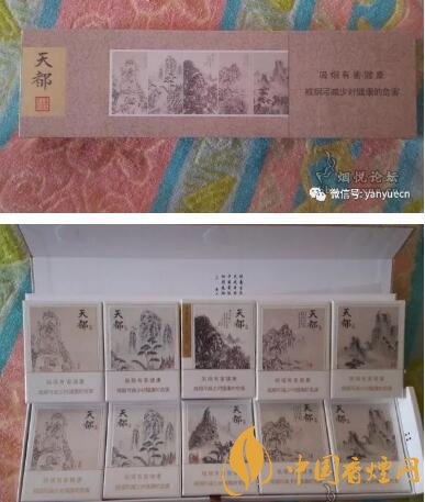 黃山(天都9+1)一條里面9包普通版+1包小巨匠。正面照還是和其他版的天都有區(qū)別的,多了一句話:百年巨匠,一代宗師,另外警示語(yǔ)改成金色的了。而且這包1里面是有石斛爆珠的,其他9盒上面的圖案以新安五大名家的畫作為設(shè)計(jì)元素,成就了從自然奇觀到藝術(shù)瑰寶的蝶變。