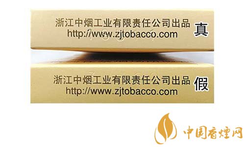 真煙鋼印為機器動態(tài)打印,整體鋼印較深、間距不等,其位置與企業(yè)網址重疊;假煙鋼印一般為手工靜態(tài)打印,鋼印較淺,位置與文字重疊。