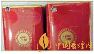 真煙的拉帶線為不干膠專用拉帶線,在紫外熒光燈的照射下會顯示紅色字母圖案,在正常光線下變換不同角度觀察時會變換出紫紅色;假煙的拉帶線均為普通拉帶線,生產(chǎn)工藝粗糙,不具備真煙拉帶線所呈現(xiàn)出來的特征及效果。