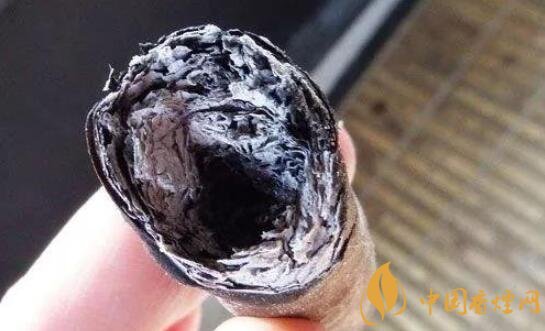 出現(xiàn)這個(gè)情況代表雪茄的中間部分燃燒速度比外圍快,原因是因?yàn)槌檠┣褧r(shí)的頻率過(guò)慢,如果放下雪茄久了,茄衣和茄套的溫度會(huì)下降而茄芯仍然維持高溫,所以燃燒溫度較高的茄芯就會(huì)比茄衣和茄套燃燒得更快并形成洞穴的形狀。處于這個(gè)狀態(tài)的雪茄,因?yàn)榍岩潞颓烟讻]有完全地燃燒,所以雪茄的口感會(huì)不平衡,味道一般也會(huì)較為辛辣。