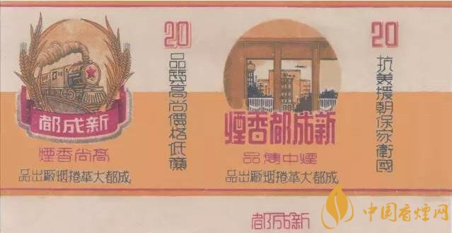 “新成都”煙標(biāo)其主圖是新投入營(yíng)運(yùn)的成都火車站,副圖是一列火車奔馳在新竣工通車的成渝線上,并印有“抗美援朝 保家衛(wèi)國(guó)”、“品質(zhì)高尚 價(jià)格低廉”等字樣,既展現(xiàn)了新時(shí)代、新成都、新面貌,也代表了當(dāng)時(shí)包含大華卷煙廠在內(nèi)的整個(gè)川煙工業(yè)的家國(guó)情懷。