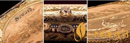 雪茄盒主體由黃金制作,細(xì)節(jié)上包括刻字SEWARD,一顆寶石和美國國旗圖案,以及美國原住民婦女的狩獵場景。一筆最重要的交易,一段歷史就完整的呈現(xiàn)在一個雪茄盒上了。想要了解更多內(nèi)容請點(diǎn)擊:西班牙代理商推出了中國豬年高希霸生肖雪茄