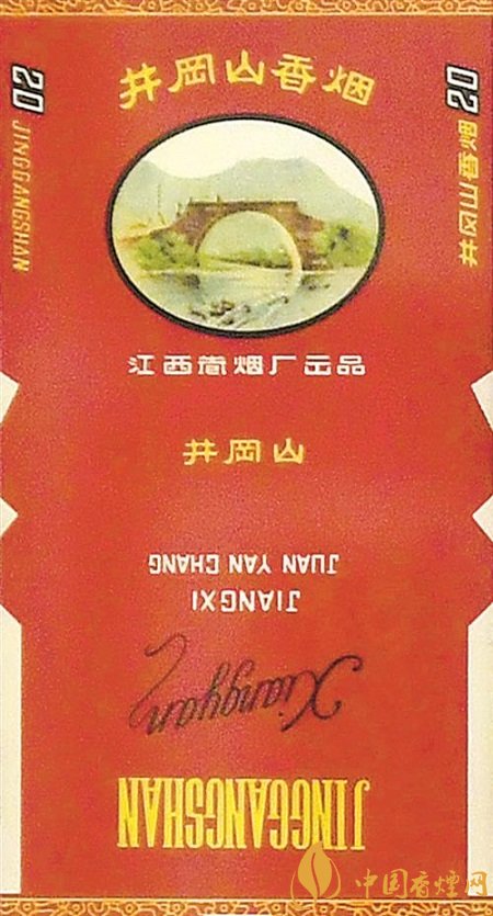 “井岡山”(上世紀(jì)50年代出品) 1958年,“井岡山”于江西南昌卷煙廠創(chuàng)牌。因誕生于中國革命的搖籃井岡山而得名。 煙標(biāo)設(shè)計(jì)最初以“紅軍會師橋”“黃洋界保衛(wèi)戰(zhàn)紀(jì)念碑”為元素,上世紀(jì)70年代以后以“井岡山五指峰”為主元素。 井岡山是中國革命的搖籃。那一時(shí)期留給后人最為寶貴的財(cái)富,就是跨越時(shí)空的井岡山精神,這一精神在煙標(biāo)中得到體現(xiàn)。