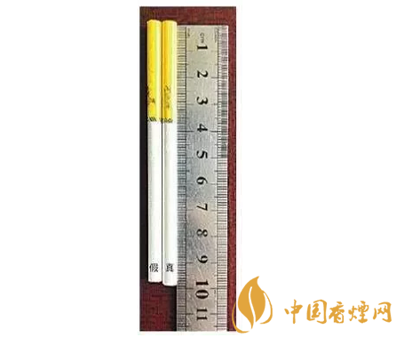 兩相比較,真煙的煙支明顯比假煙的煙支長(zhǎng)。(左假右真)