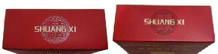 如圖所示:真品商標(biāo)紙顏色為深紅色,正面喜字燙金邊緣凸起感明顯;假煙商標(biāo)紙顏色多為鮮紅色,正面喜字為平版印刷且邊緣未見(jiàn)凸起感。(左真右假)
