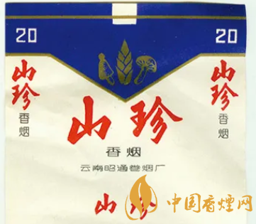 蘑菇是世界上食用菌中最大的一個(gè)菇種,因其富含的人體必需氨基酸、礦物質(zhì)、維生素和多糖等營(yíng)養(yǎng)成分,而有“植物肉”之稱。上世紀(jì)80年代,云南昭通卷煙廠出品有一枚“山珍”(圖5)煙標(biāo),該標(biāo)主版上方于藍(lán)底上,采用金色分別描繪了兩種蘑菇,以及一根春筍的畫(huà)面。