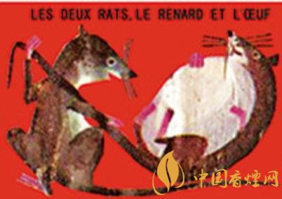 法國(guó)著名煙草經(jīng)銷機(jī)構(gòu)塞塔公司推出過(guò)系列伊索和拉封丹寓言卡通火花,其中的“鼠火花”內(nèi)容詼諧,十分有趣?!峨p鼠、狐貍和雞蛋》(圖二)讓外界不要低估老鼠的智慧。狡猾的狐貍原本認(rèn)定老鼠搬不了雞蛋,不料兩個(gè)耗子狡黠協(xié)作,一個(gè)躺倒抱住雞蛋的同時(shí)直接讓伙伴拽拉著它的尾巴,彼此安然回洞!《老鼠和牡蠣》(圖三)是說(shuō)被誘惑和貪婪的后果很?chē)?yán)重:內(nèi)陸之鼠初到海邊,看到張殼做日光浴的牡蠣新奇不已,竟一頭伸進(jìn)殼中欲以秀色為餐,結(jié)果……即刻就要閉合的美艷景色不會(huì)免費(fèi)??!