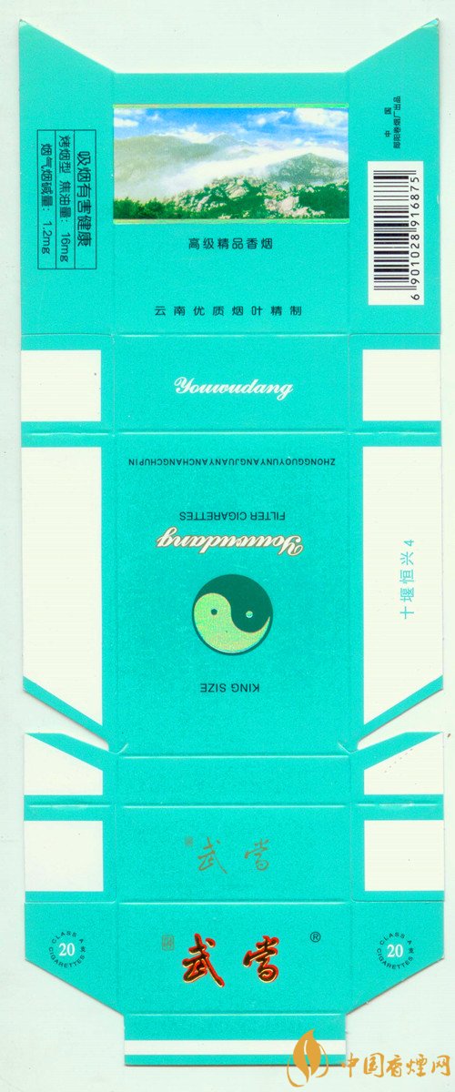 我國有不少道教圣地,以此為主題的煙標也可以看到太極圖樣。上世紀90年代,湖北鄖陽出品的“武當”煙標,副版就有一幅太極圖。