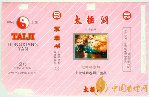 而安徽蚌埠卷煙廠出品于上世紀80年代的“太極洞”套標,副版也繪有一幅太極圖,主版圖案分別是位于安徽廣德縣東北石龍山太極洞內的“太上老君”“金龍盤玉柱”“大千世界”“壺天宮”“三清池”5處自然景點。