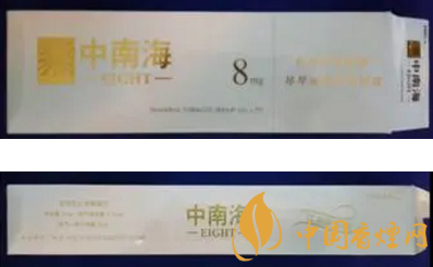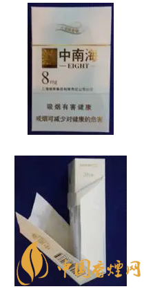 中南海(金8mg)由上海煙草(集團(tuán))公司北京卷煙廠(chǎng)生產(chǎn),卷煙規(guī)格為(25+59)mm×24.6mm。